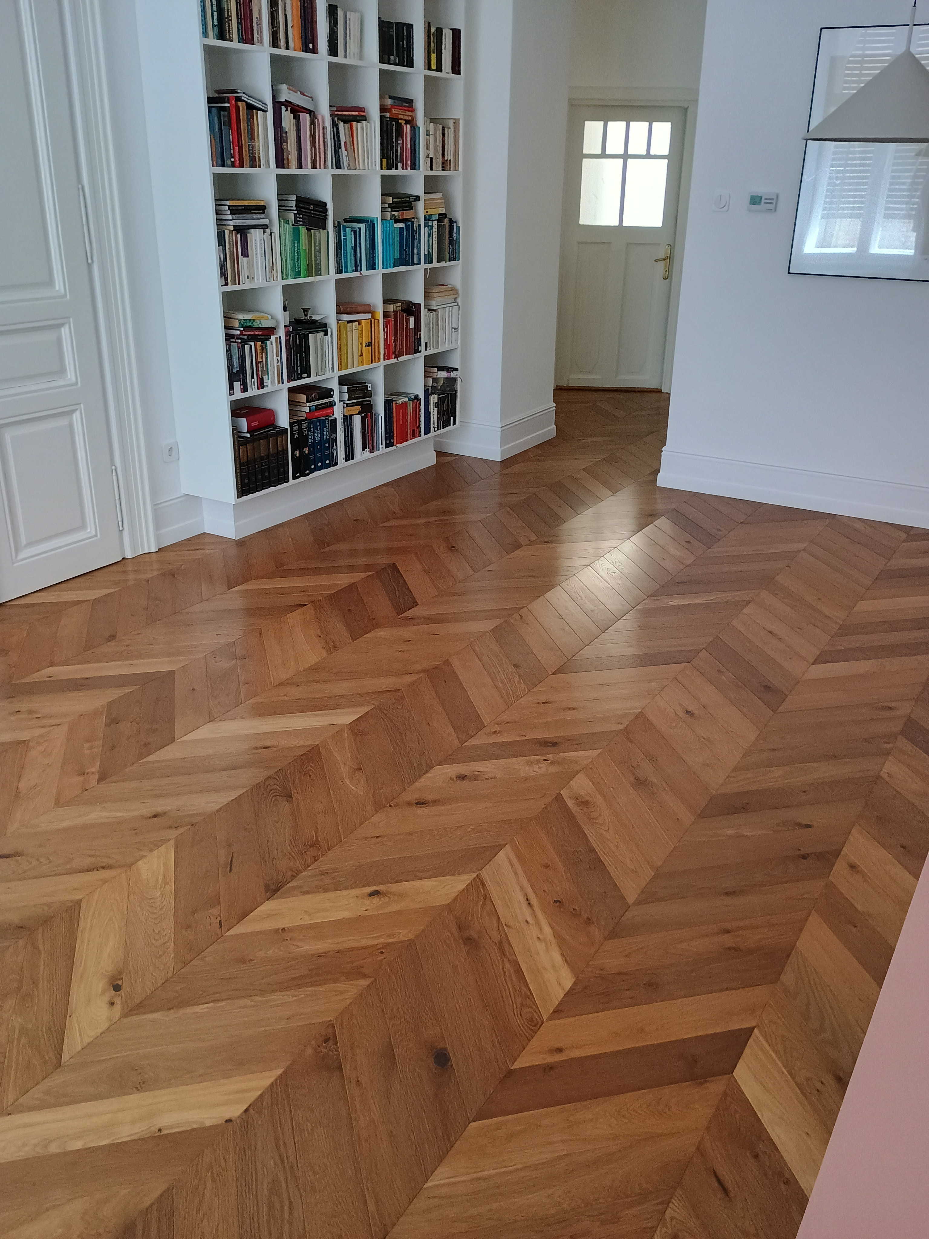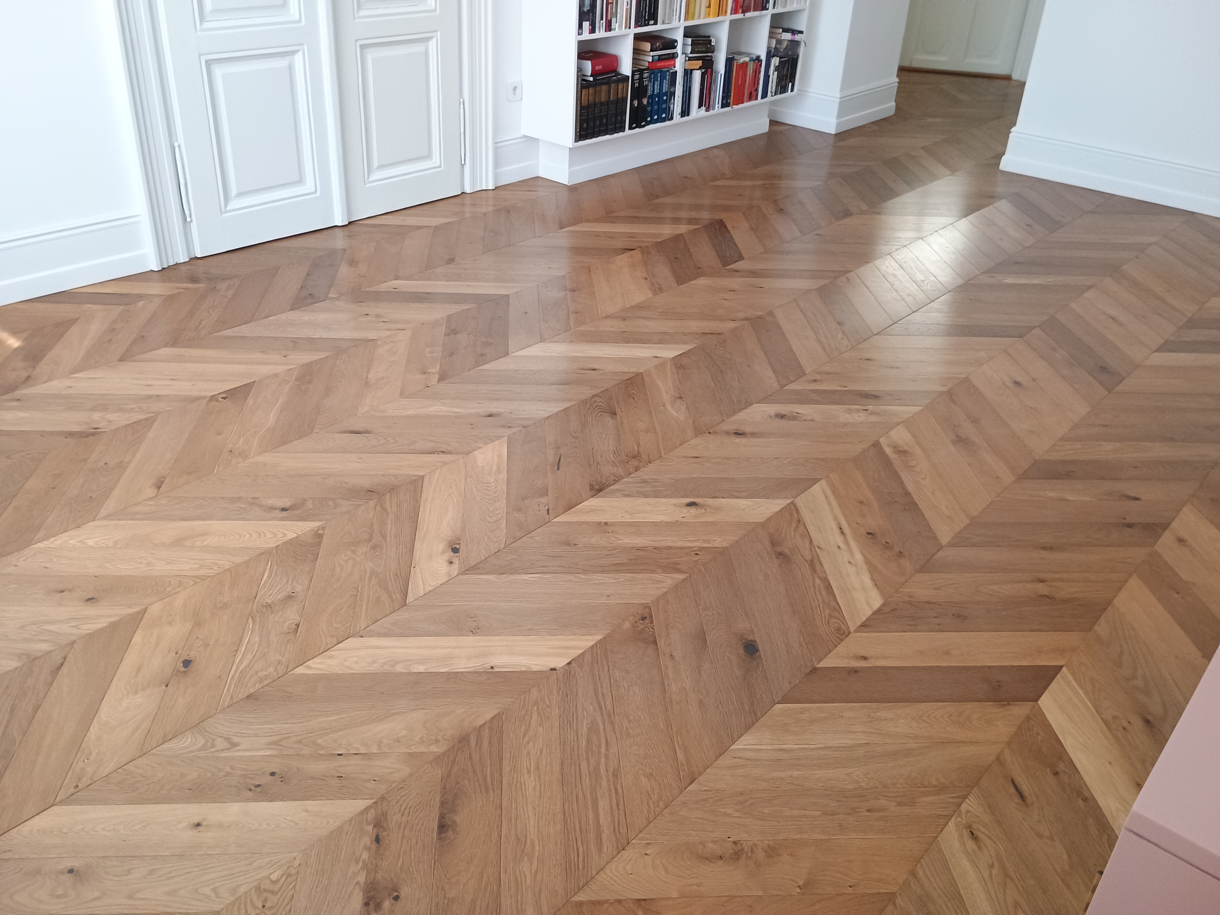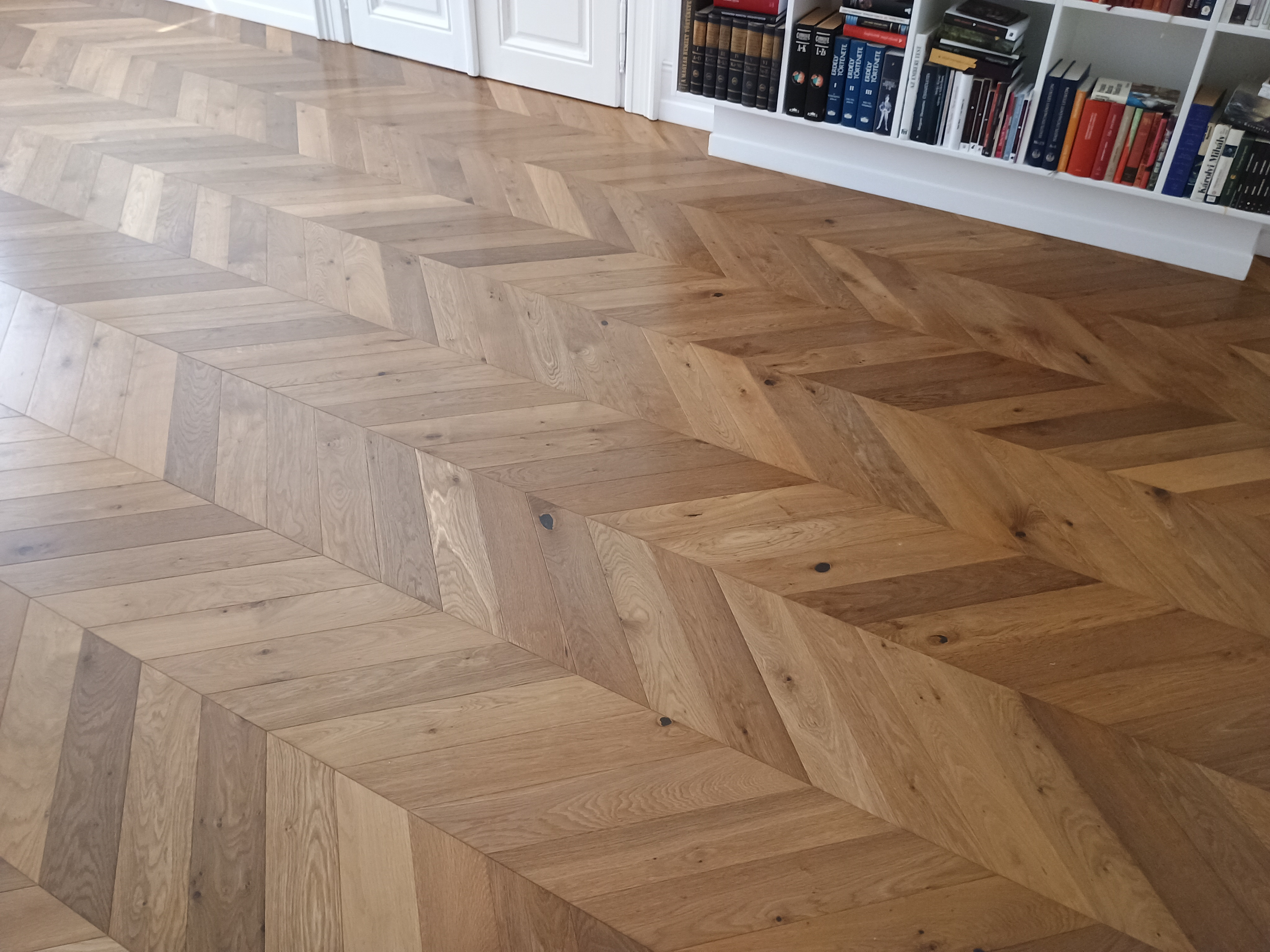 Oiled Engineered Parquet Laid in Herringbone Pattern