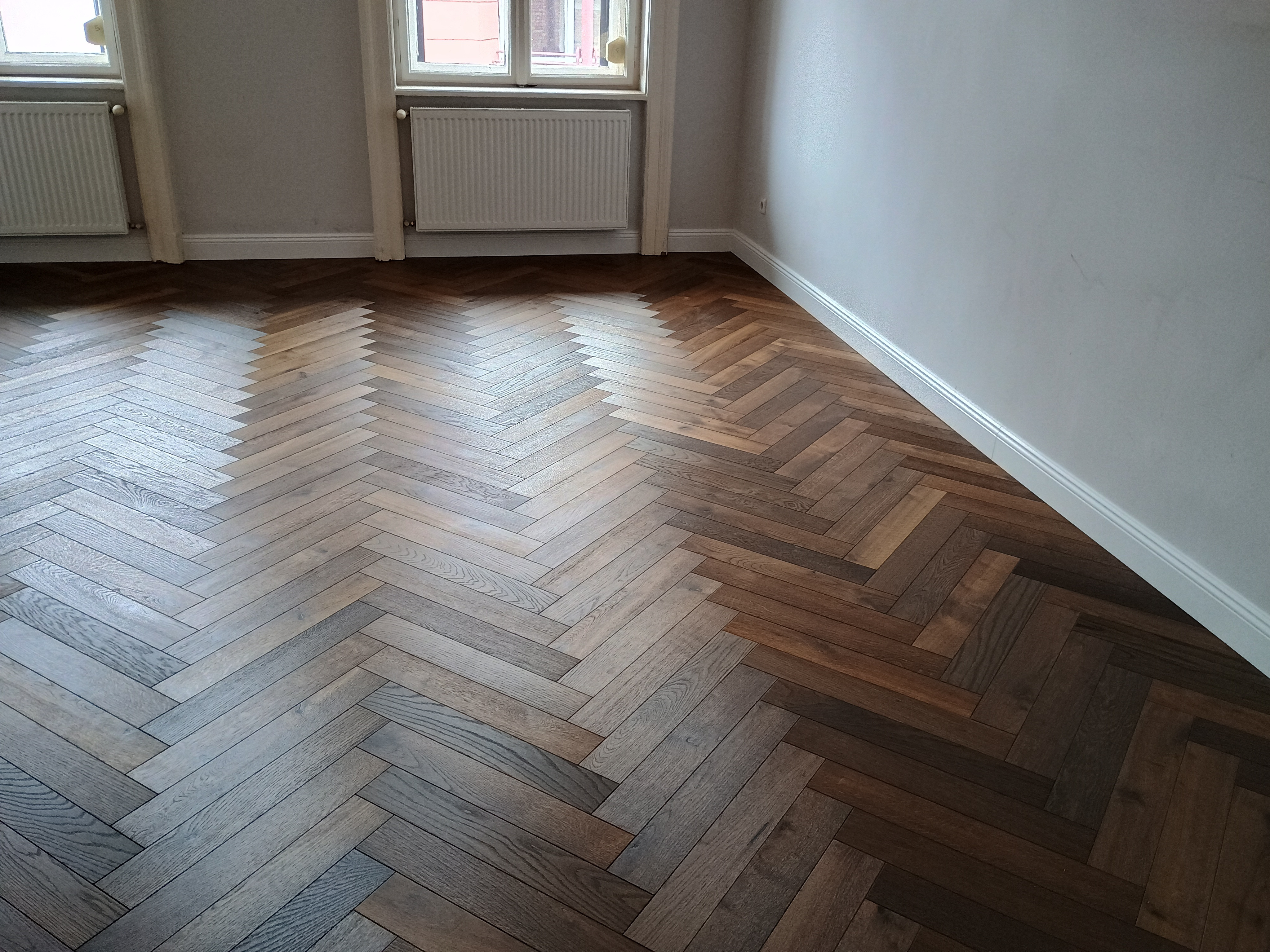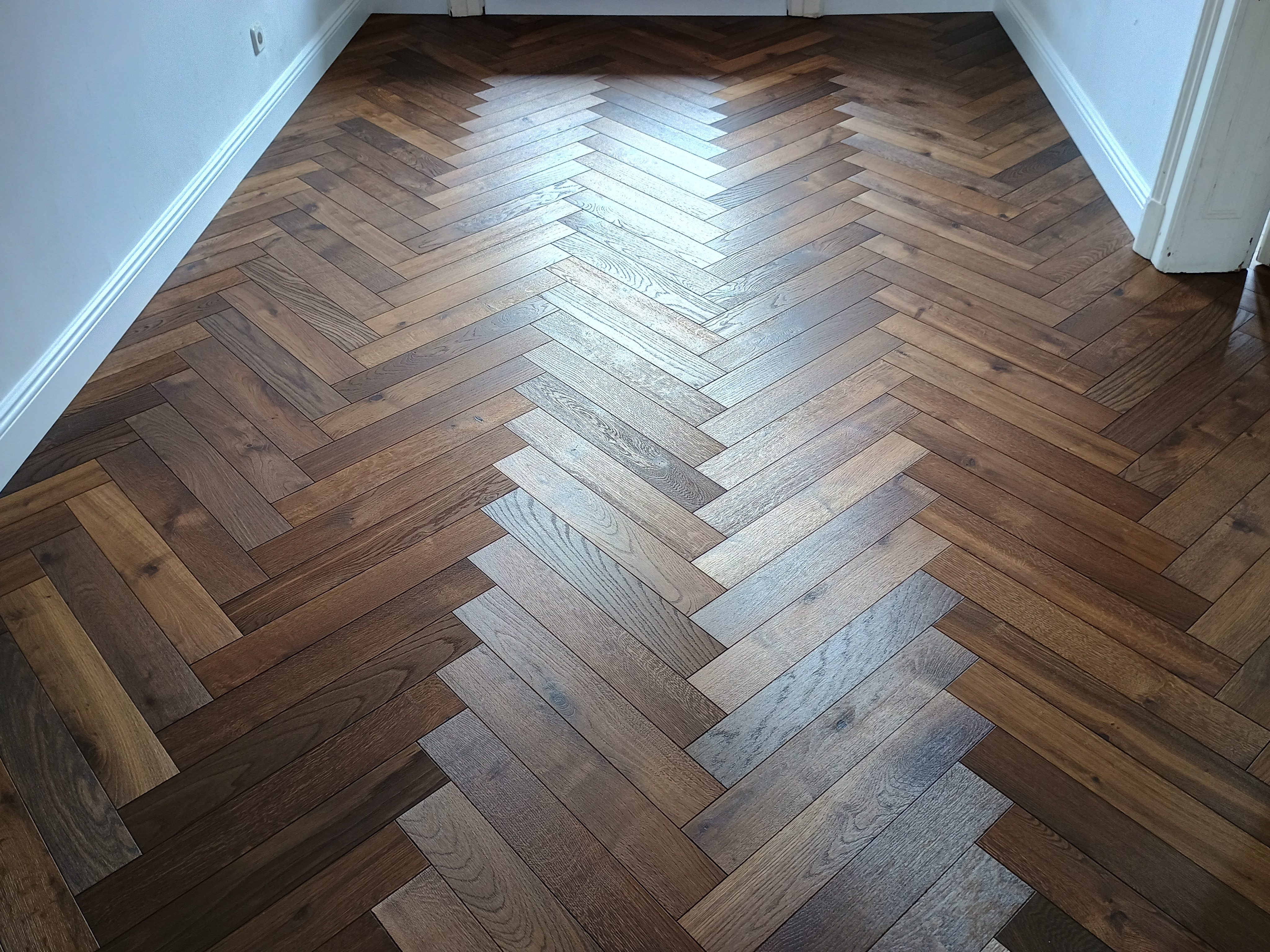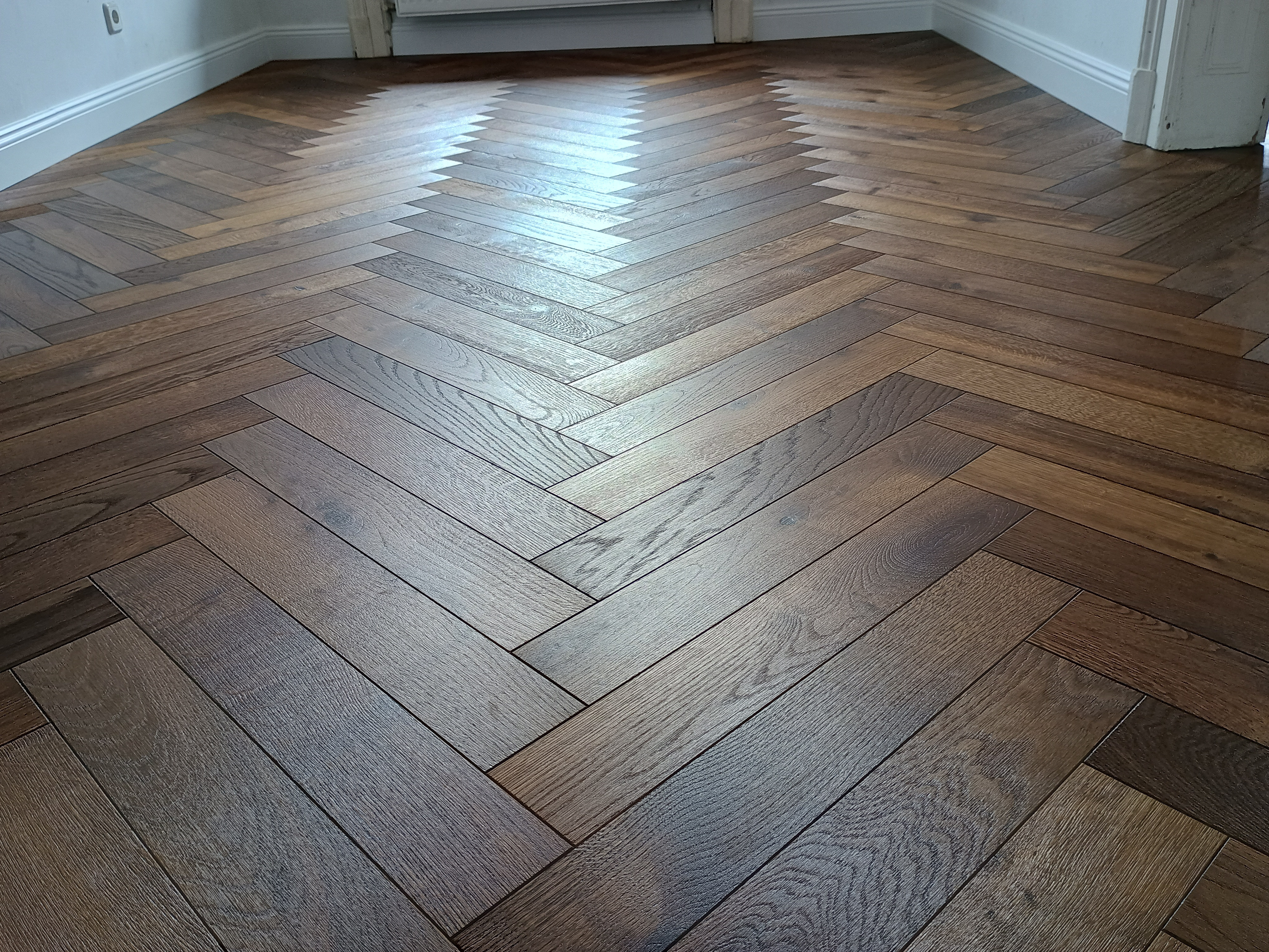 Oiled Engineered Parquet Laid in Herringbone Pattern