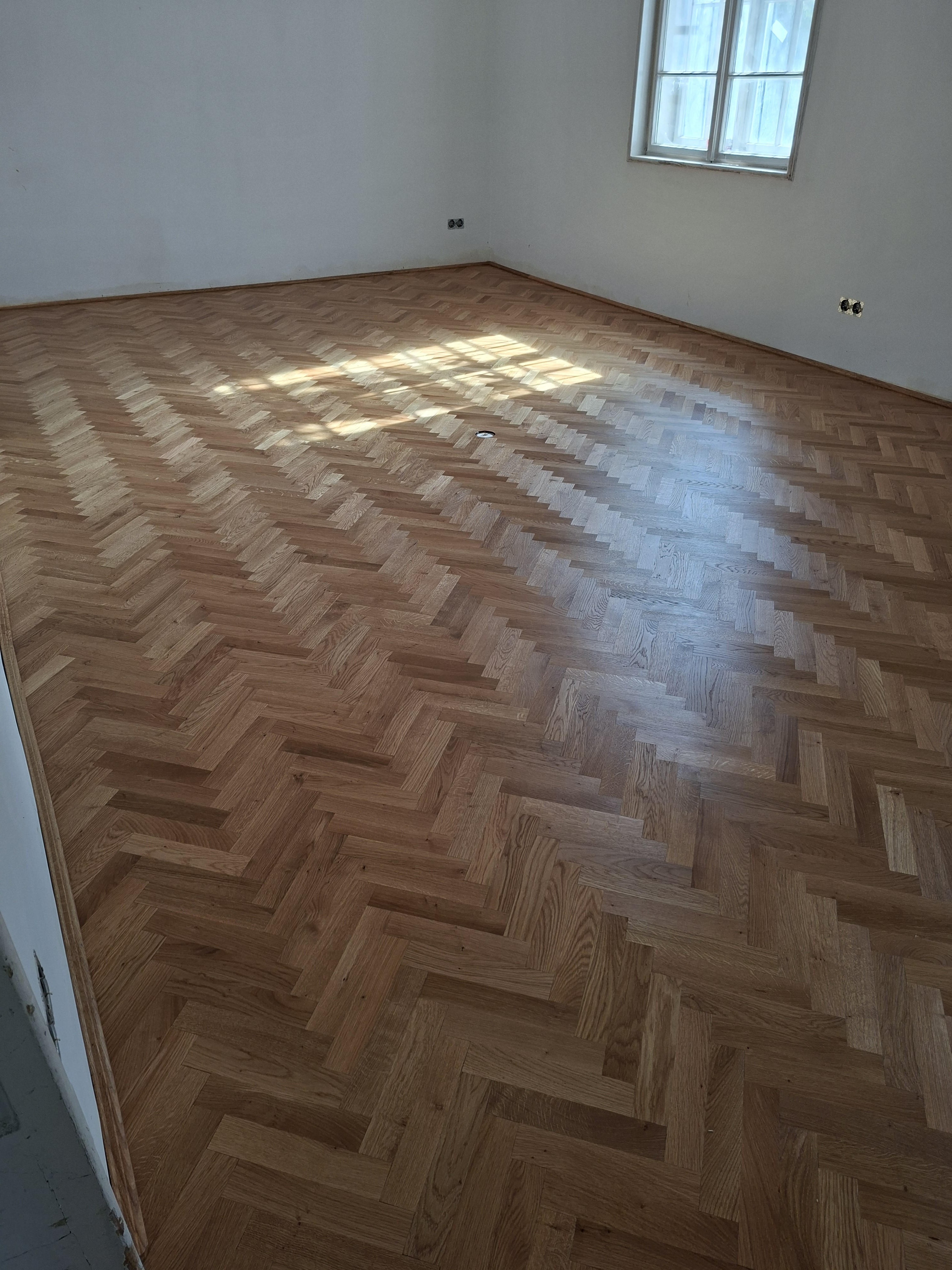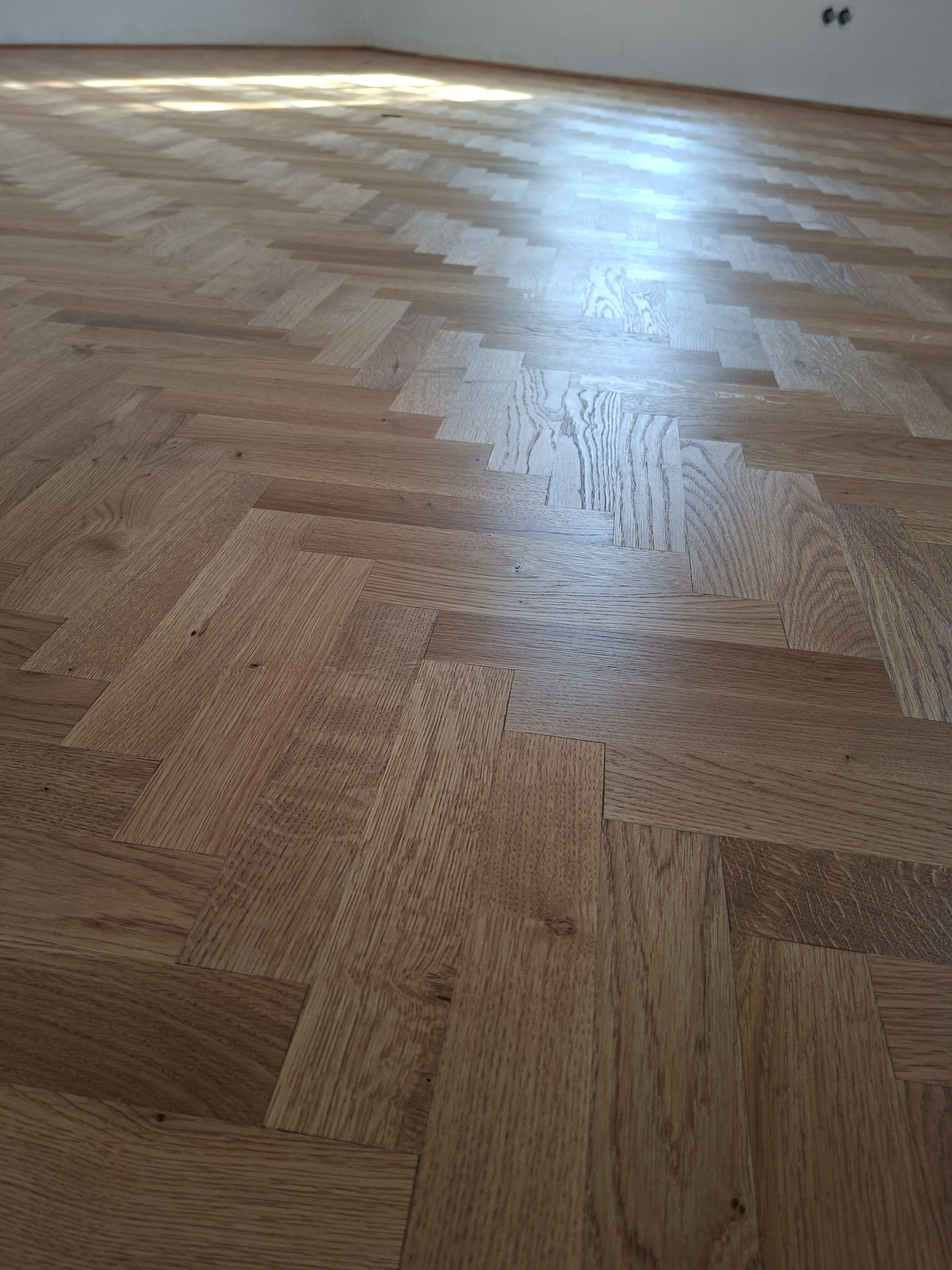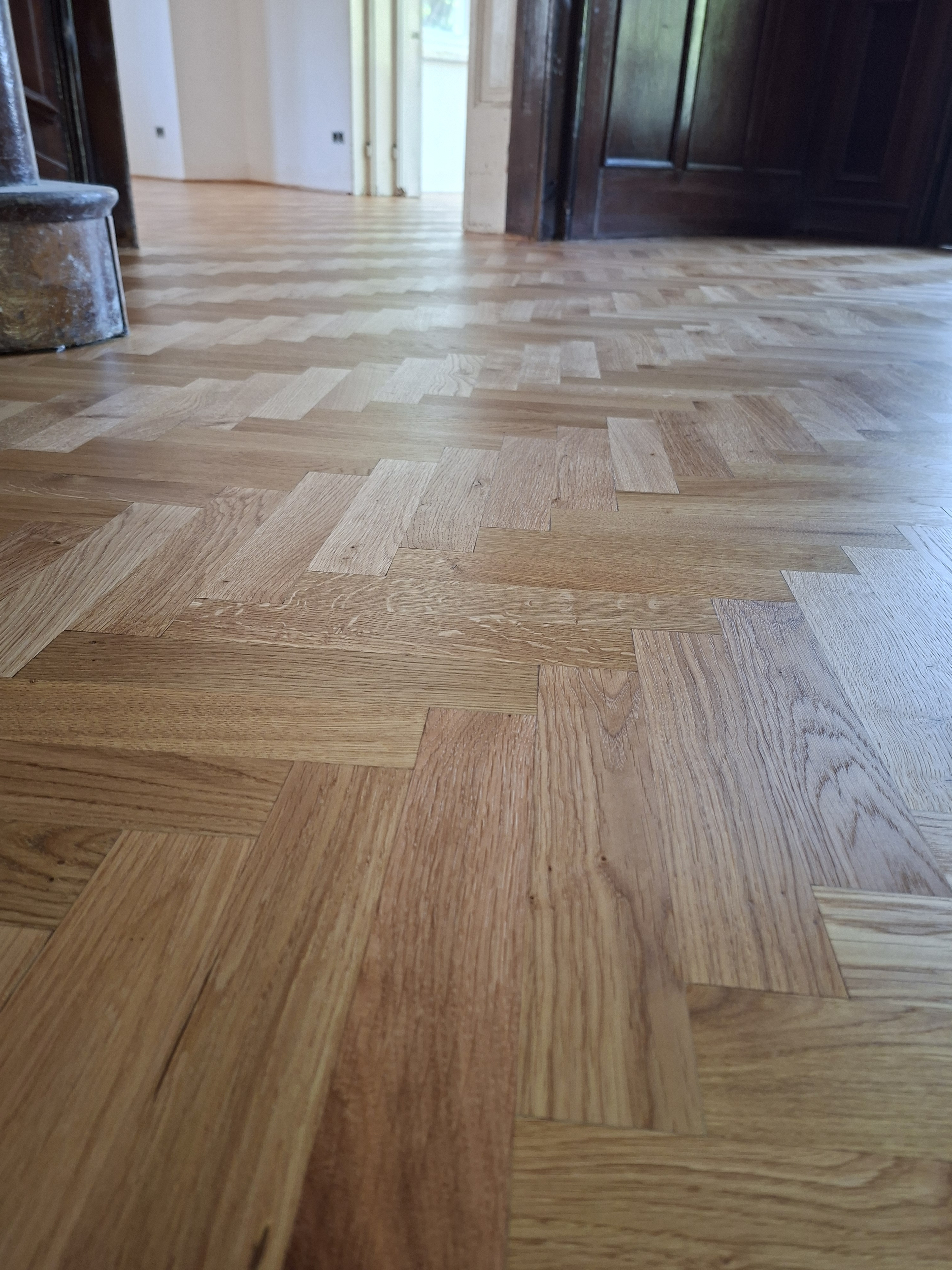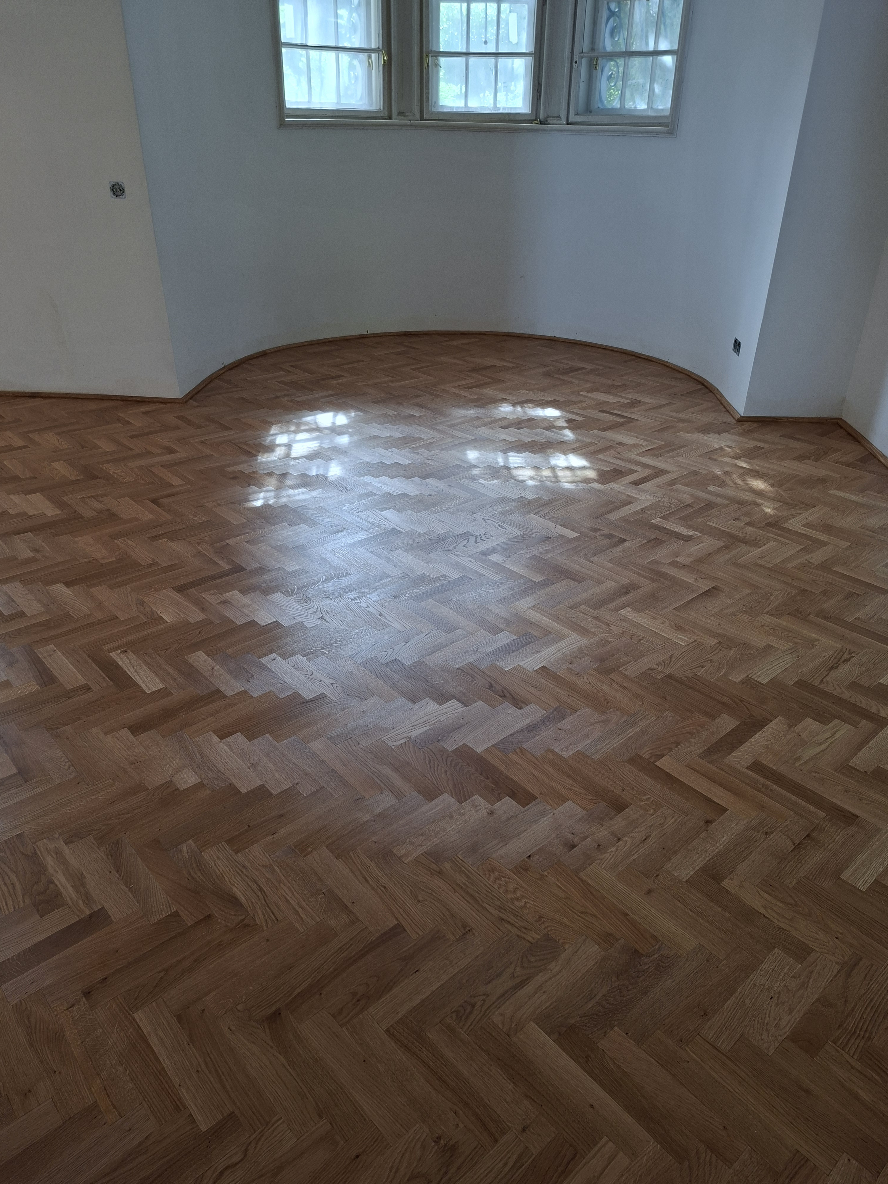 Olajozott készparketta halszálka mintába rakva