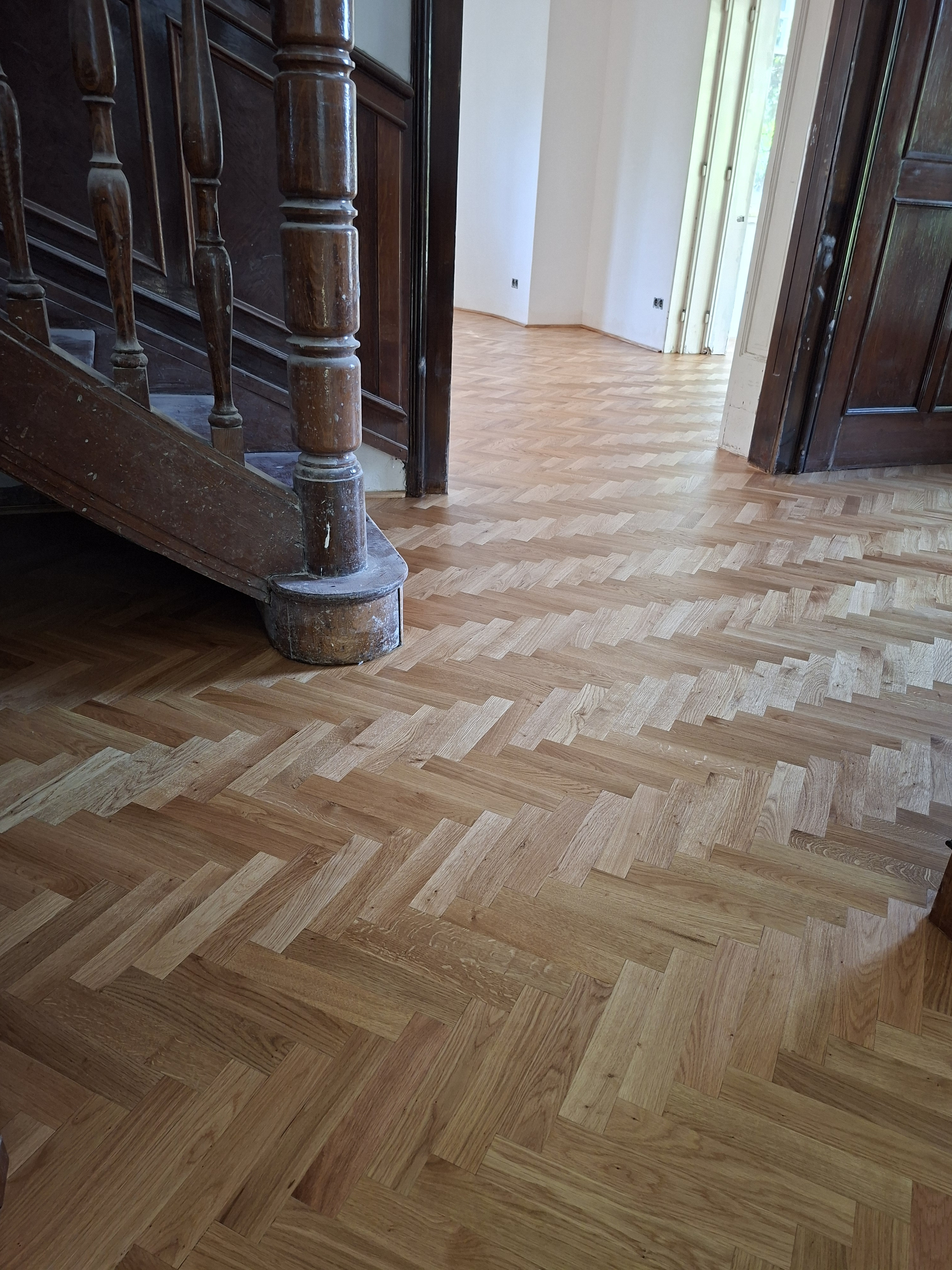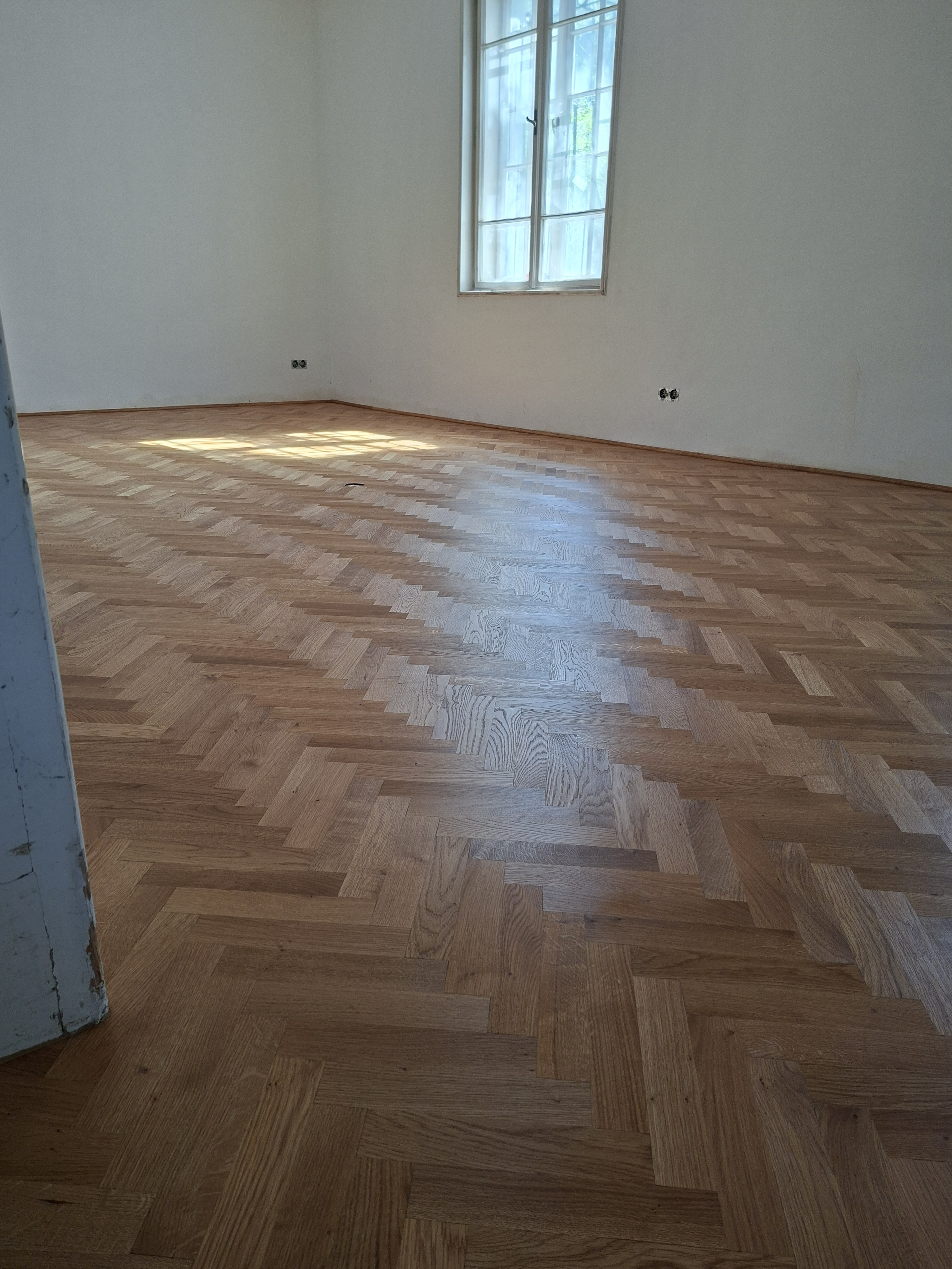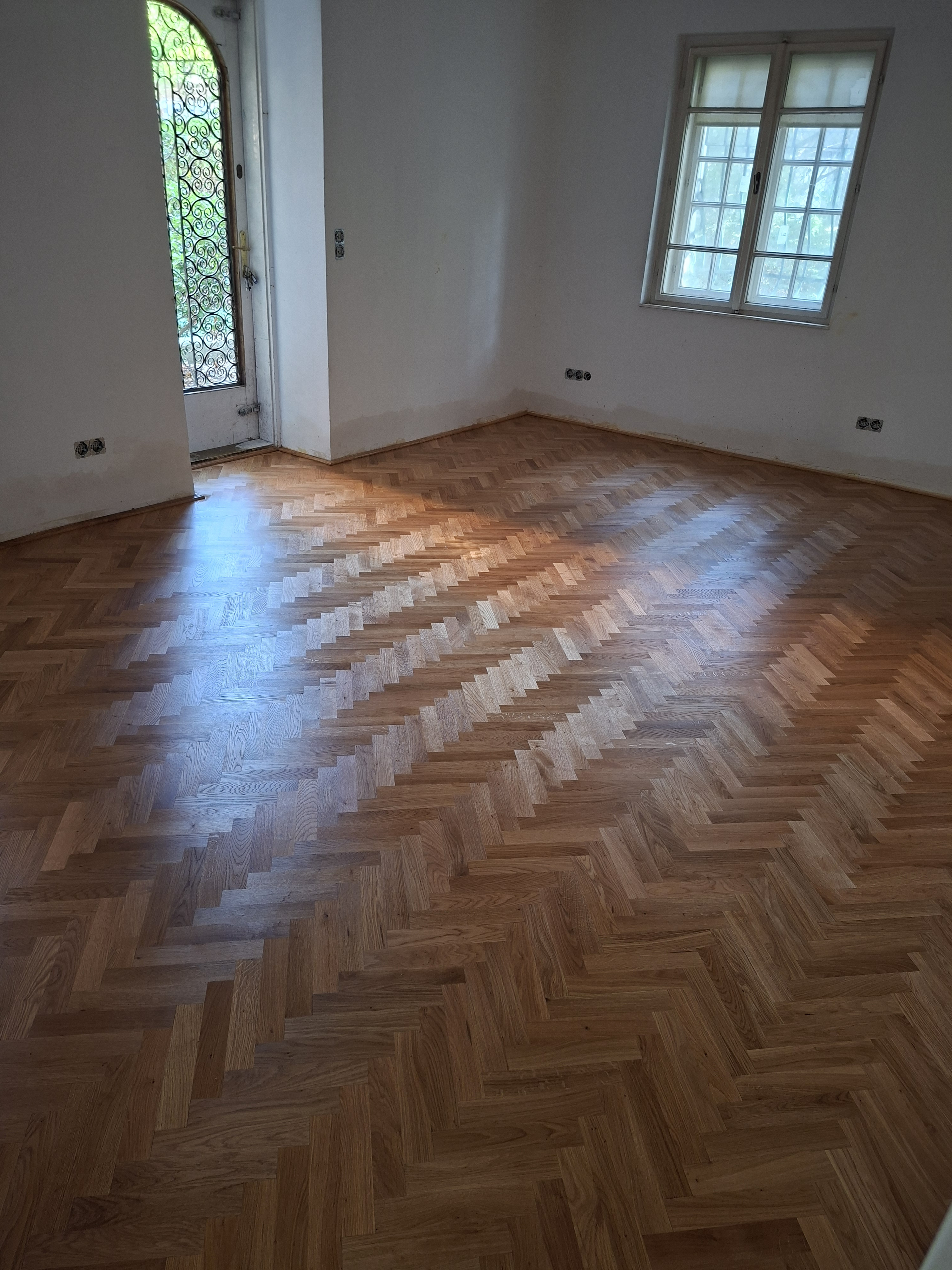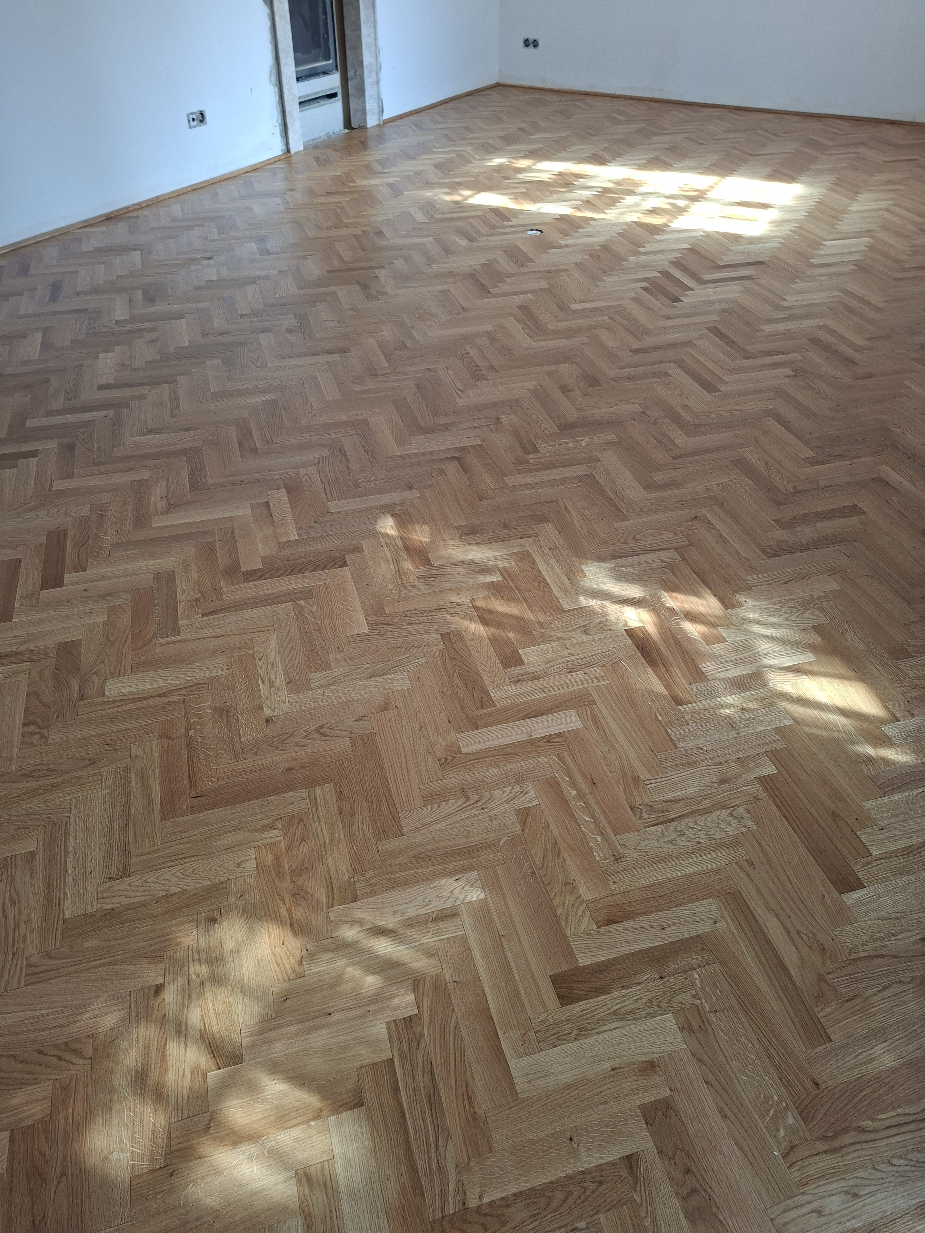 Olajozott készparketta halszálka mintába rakva