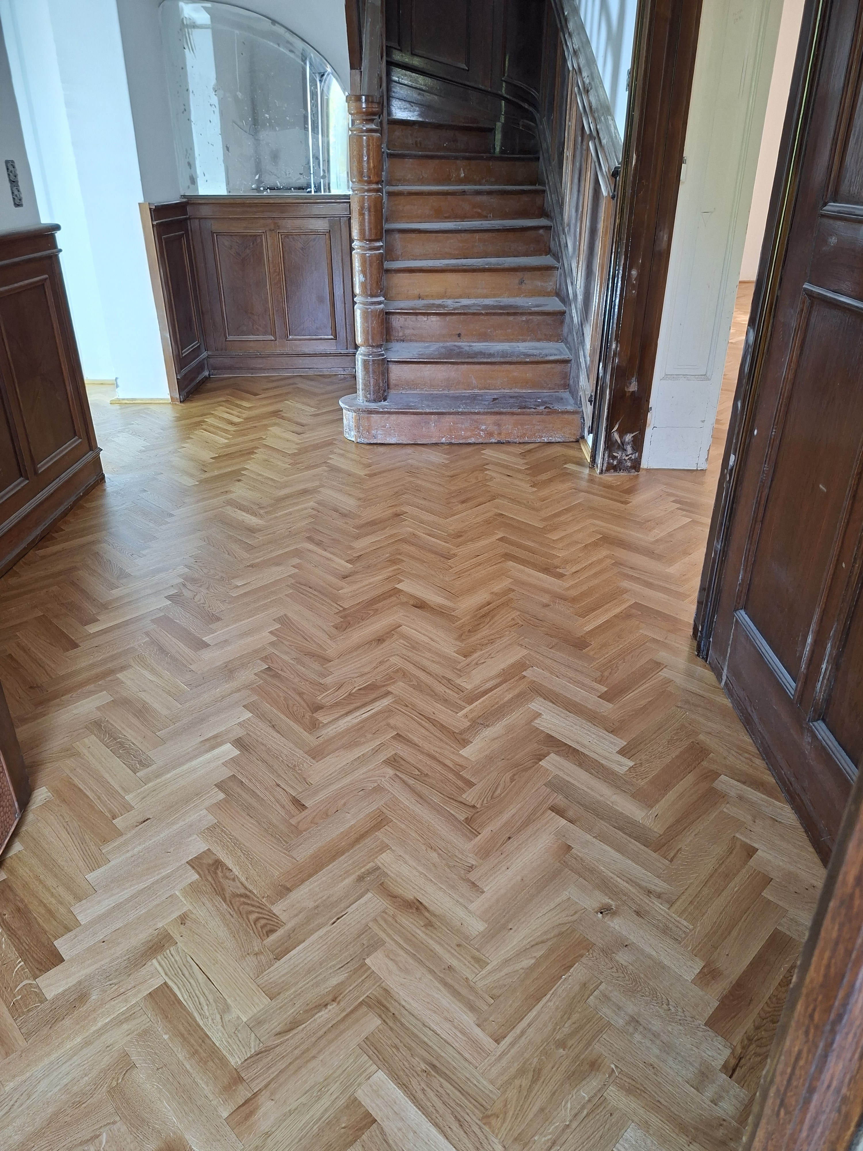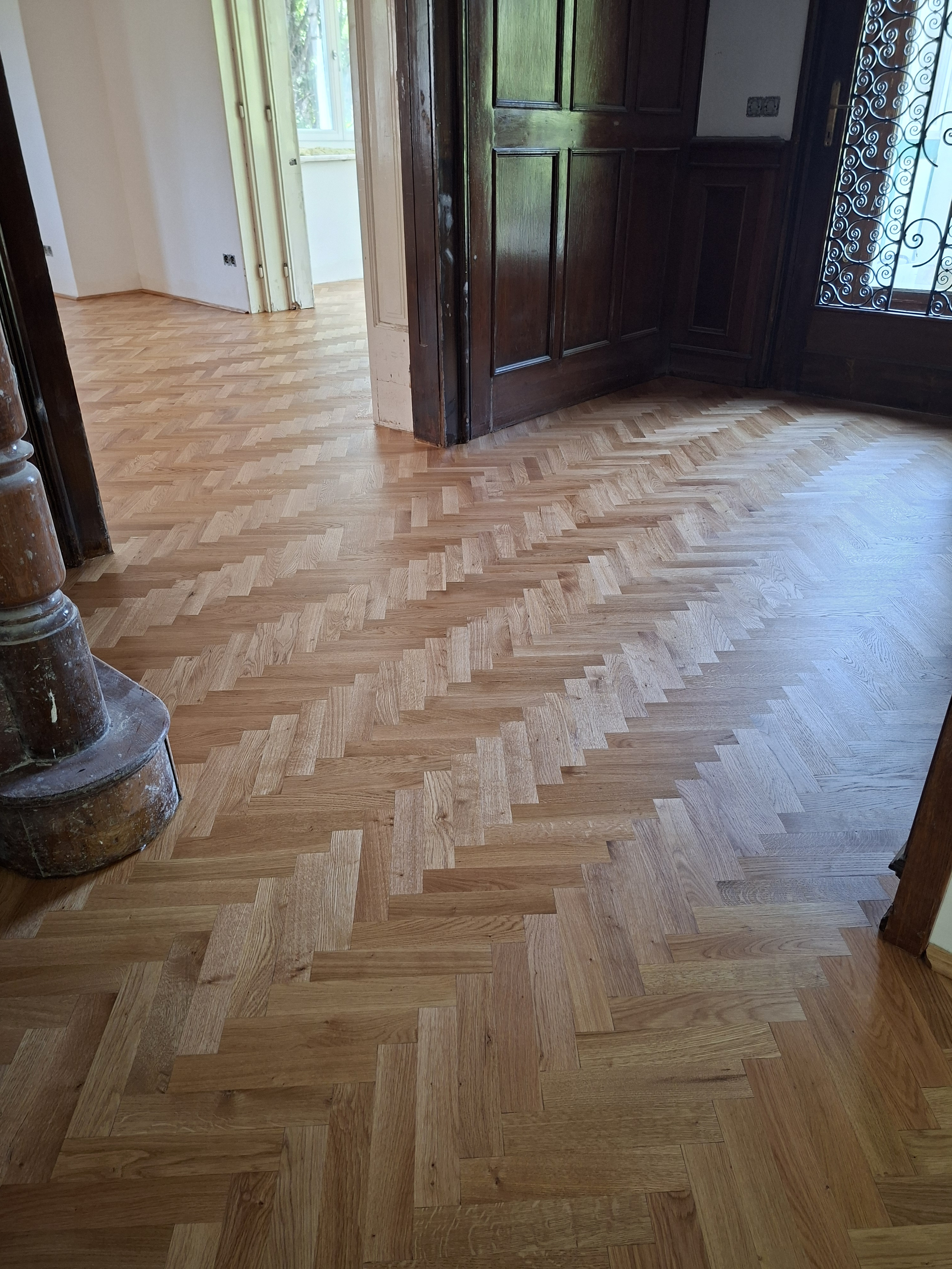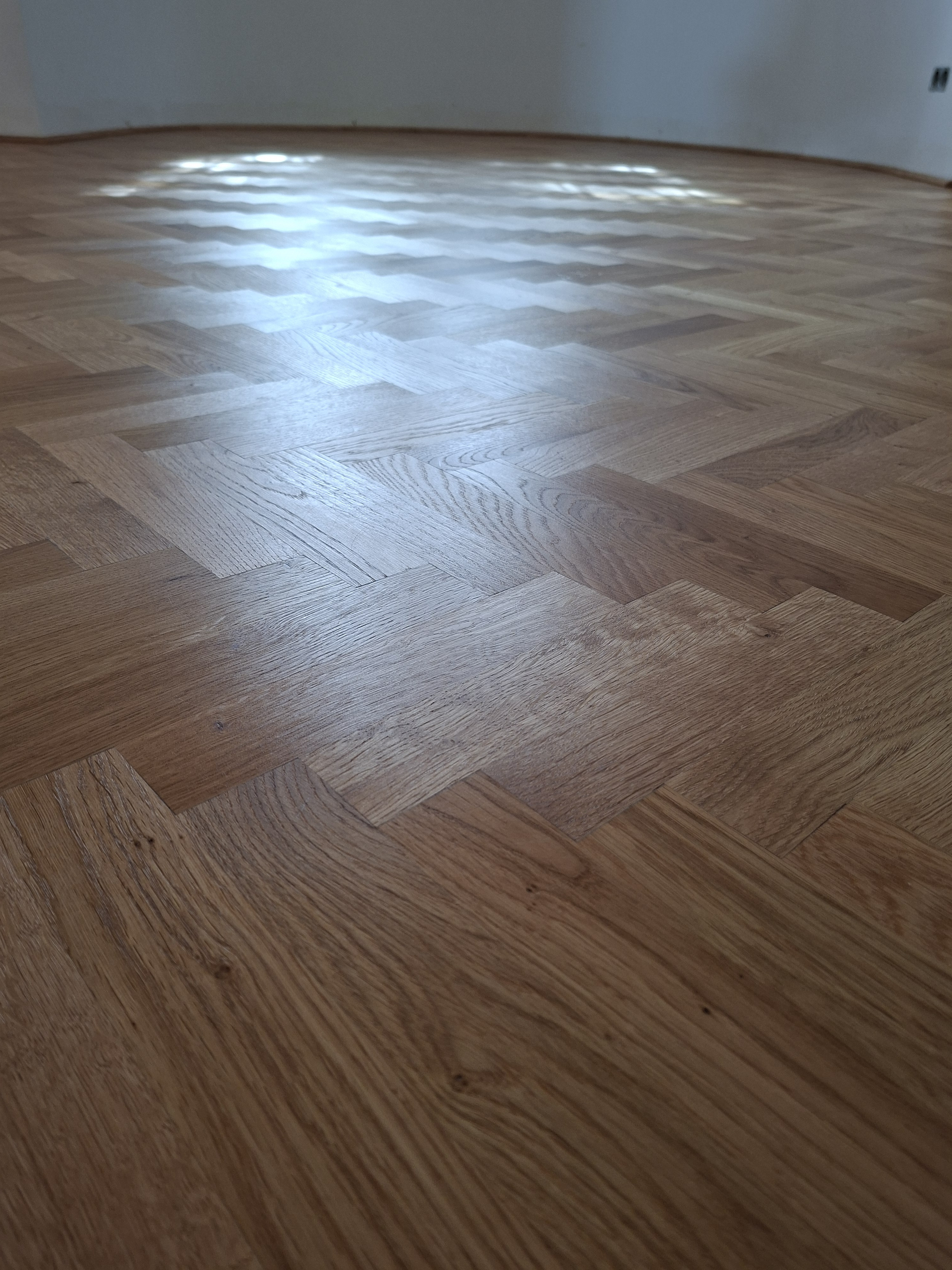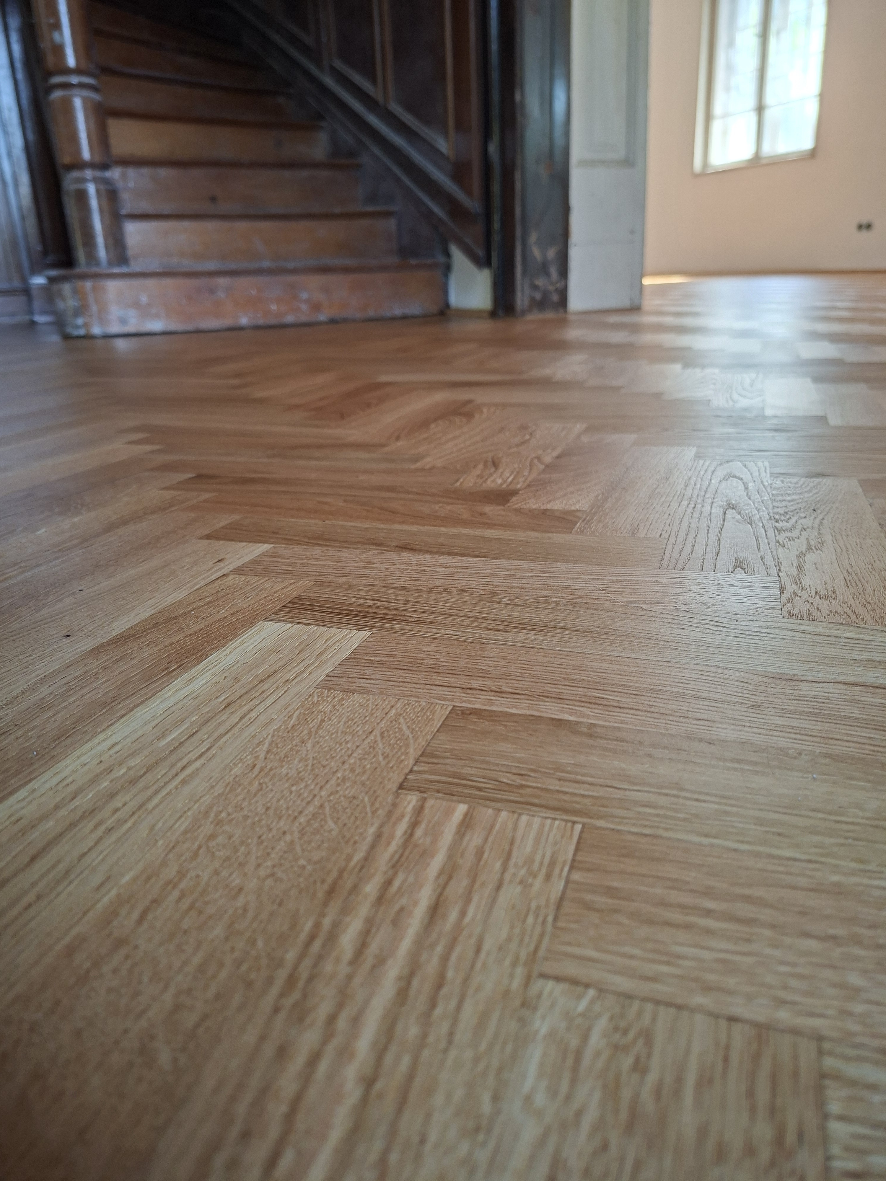 Olajozott készparketta halszálka mintába rakva