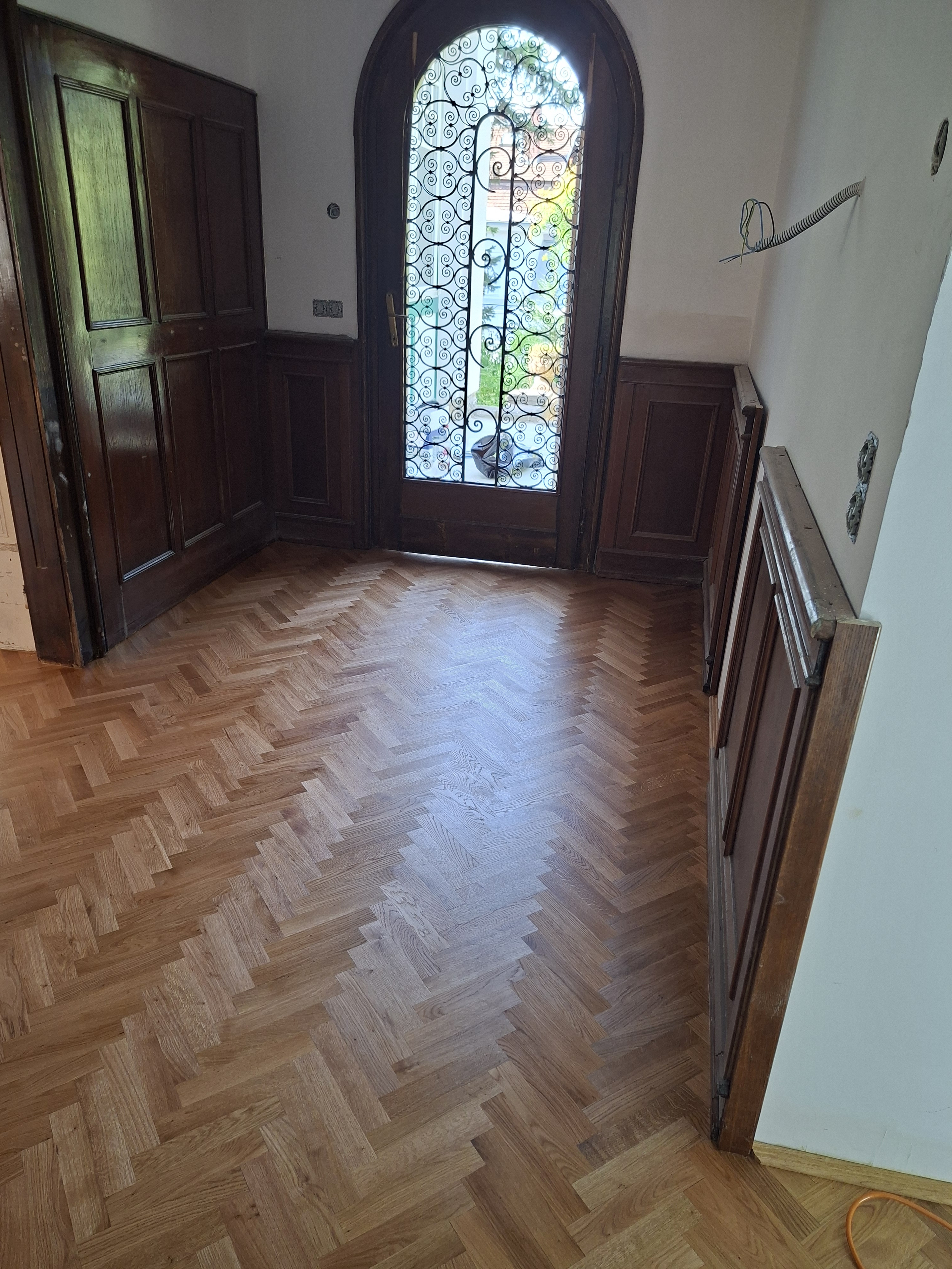 Intarzia parketta lerakása, csiszolása és lakkozása